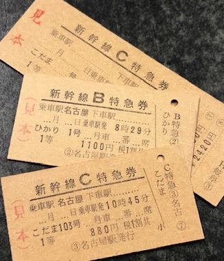 新幹線の特急券のA型やD型硬券などです。