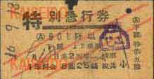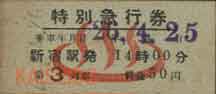 昭和16年の特別急行券で
